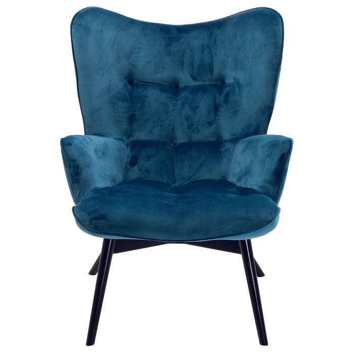 Stylish & comfortable. A charming armchair in a trendy retro design offering real comfort. Soft polyester velvet cover. Decorative upholstered buttons on backrest and seat. Perfect for upscale living. Other versions available. Made in the EU.