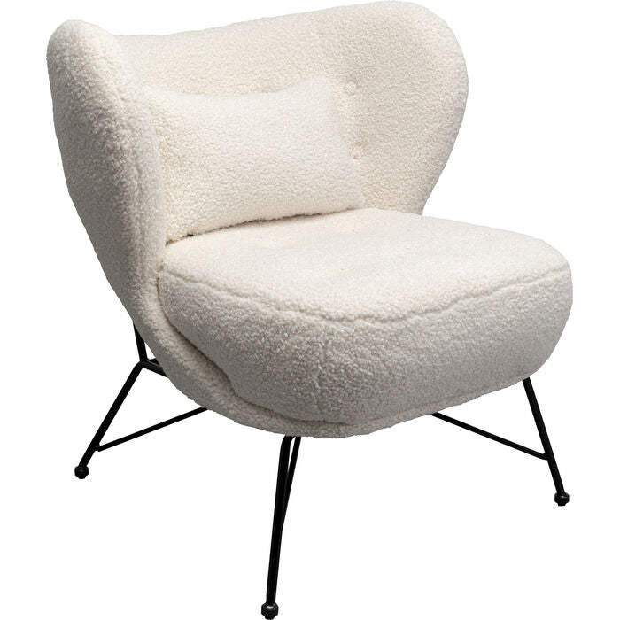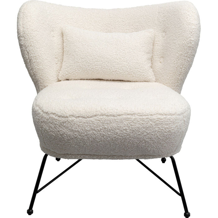 A cosy haven of peace with style: this armchair combines trendy design with a maximum feel-good factor. The soft teddy-look cover invites you to sink into it and creates cosy accents in the living area. With its organic shape, it brings lightness and a touch of retro charm to the ambience. Ideal as a solitaire in the reading area, in combination with a delicate side table or as a stylish update next to the sofa. The ensemble looks particularly harmonious with accessories in natural colours or shiny metallics. A piece of furniture that skilfully combines comfort, a feel for trends and cosy warmth.