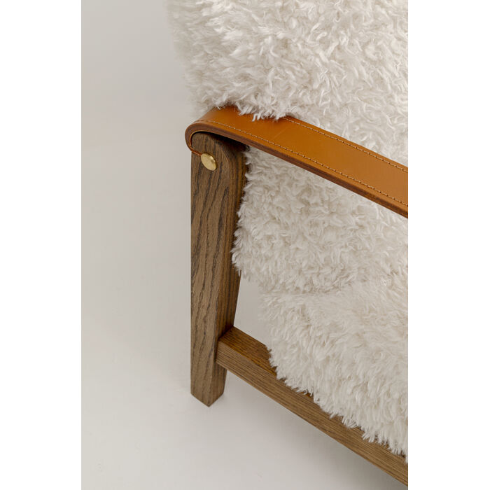 Scandinavian charm meets luxurious comfort: this recliner combines elegant restraint with stylish details. The fluffy cover in a light natural shade invites you to lean back and lends the room a homely lightness. Armrests with genuine leather add a touch of elegance, while the sturdy oiled oak frame with its expressive grain adds warmth and character. Whether as a favorite spot in the living room, a stylish haven of peace in the bedroom or a high-quality statement in the reading area - this designer piece of furniture fits perfectly with modern, natural and minimalist living concepts. Ideal for combining with soft plaids, light-colored rugs and natural materials.