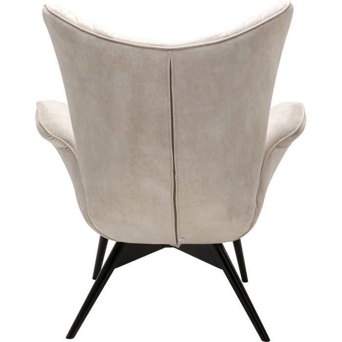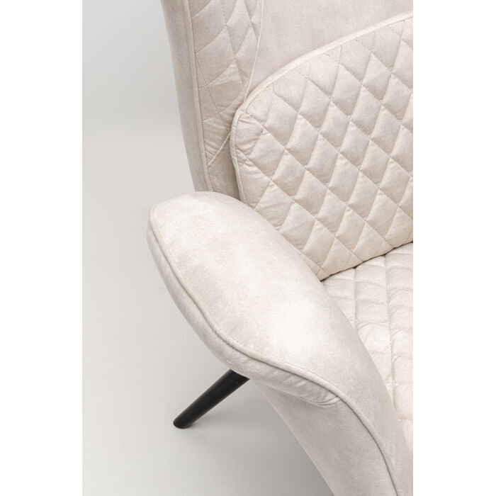 This cream armchair is a true masterpiece of elegance. The luxurious velvet cover in soft, timeless tones and the sturdy frame made of solid beech wood give this piece of furniture a special appeal. The armchair makes a stylish statement in modern, Scandinavian or vintage-inspired interiors in particular. Whether as an accent in the living room or as a charming reading chair - its versatile design allows it to be perfectly combined with various furnishing elements.