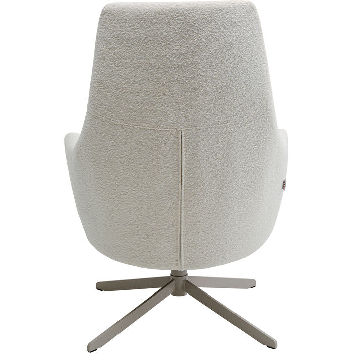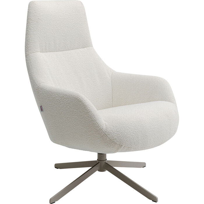 This elegant swivel armchair combines modern chic and exceptional comfort. The 360° swivel function makes it a practical companion in the living room or home office, while the generous backrest, comfortable armrests and soft seat upholstery ensure hours of relaxation. The steel base in trendy greige not only gives the armchair stability, but also a stylish touch. With its clear design, the armchair blends wonderfully into modern, minimalist rooms and creates elegant accents on the floor or next to a Scandinavian sofa. It is particularly effective in combination with light wood furniture or soft colors.