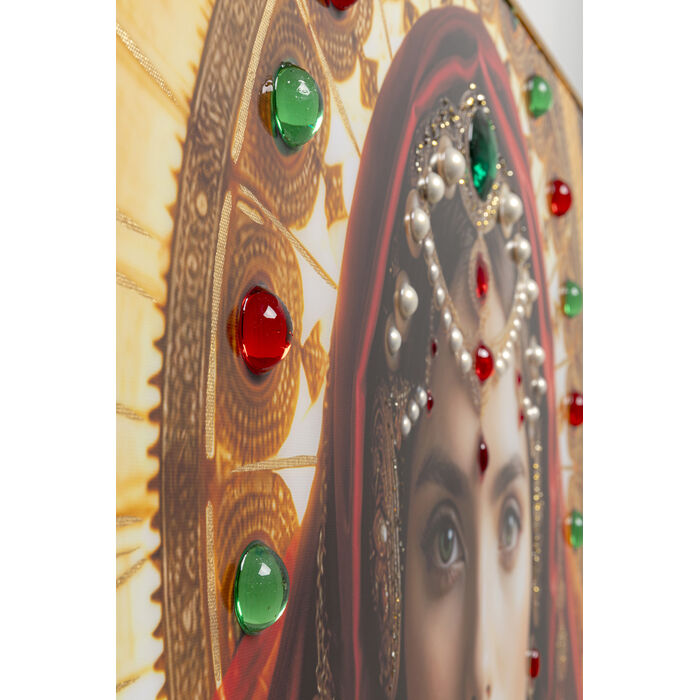 A real eye-catcher for modern rooms - this stunning glass picture combines art and luxury in one masterpiece. The harmonious color combination of gold and red radiates warmth and elegance, while the expressive female motif impresses with its attention to detail. Discreet rhinestones and the fine golden frame add a glamorous crown to the work of art. Whether in a stylish living room, an exclusive bedroom or an upscale hallway - this picture will attract everyone s attention and lend any room a special atmosphere. Ideal for anyone who wants to integrate art into their living environment.