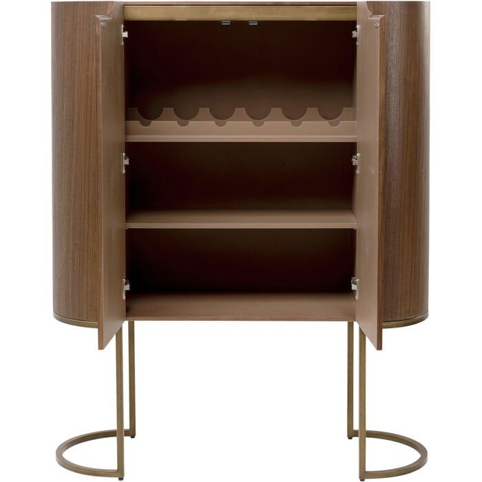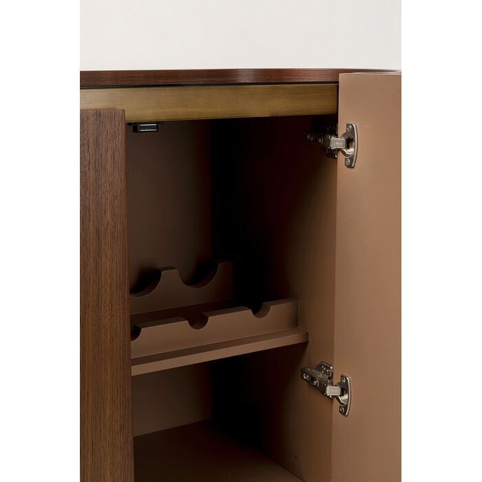The furniture from the “Giorgio” collection skillfully combines sophisticated design and cozy elegance. Expressive wood meets elegant glass accents, lending depth and a touch of glamour to the overall look. Rounded lines and delicate metal feet create a modern lightness that still radiates down-to-earthness. This bar cabinet is a stylish eye-catcher – perfect for elegantly displaying glasses, bottles, and bar accessories while discreetly storing them at the same time. Inside, it surprises with its well-thought-out layout and clever details that make mixing and serving a real experience. Inside, the collection scores with plenty of space for your favorite items and everyday helpers – outside with a look that leaves a lasting impression. Ideal for stylish living concepts that value character, comfort