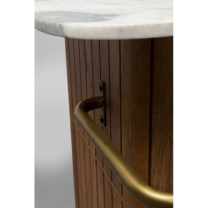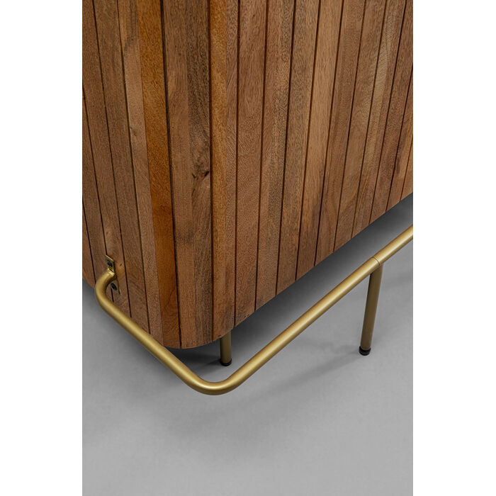 The models from the Grace collection bring harmony to the living room with their gentle curves. On the one hand, this is due to the elegant material composition of solid wood and marble. On the other hand, the collection plays with surfaces such as the patterned and smooth sections of the wooden fronts. A discreet, brass-coloured decorative strip rounds off the design of the home bar. The bar is not just a statement piece of furniture. You can also use a bar to visually separate the dining area from the living area, for example.