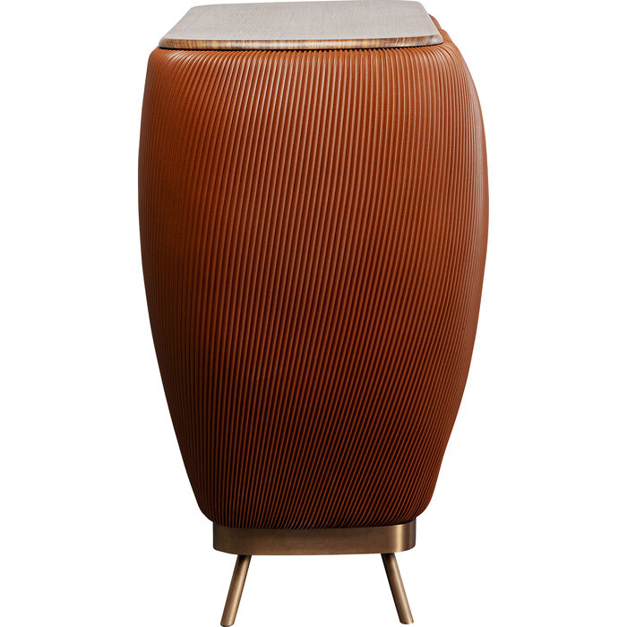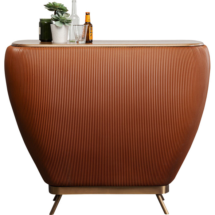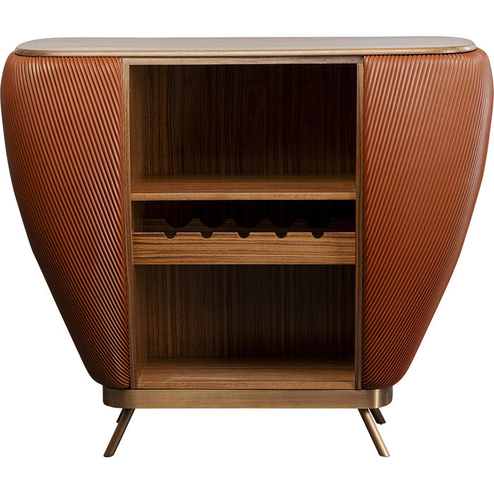 Top tip from our interior design consultants: when furnishing your living room, simply get away from general patterns and break the rules with functional and unusual furniture. Bars and bar trolleys are ideal for this. An elegant home bar like this one, for example, creates a skilful link between the dining room and the living area. Alternatively, in a large living room, the corners are ideal for placing a home bar at an angle. This bar with its counter and rear shelves made of wood veneer will add a luxurious touch to your home. A practical side effect: glasses, bottles and other table accessories disappear inconspicuously into the body of the bar.