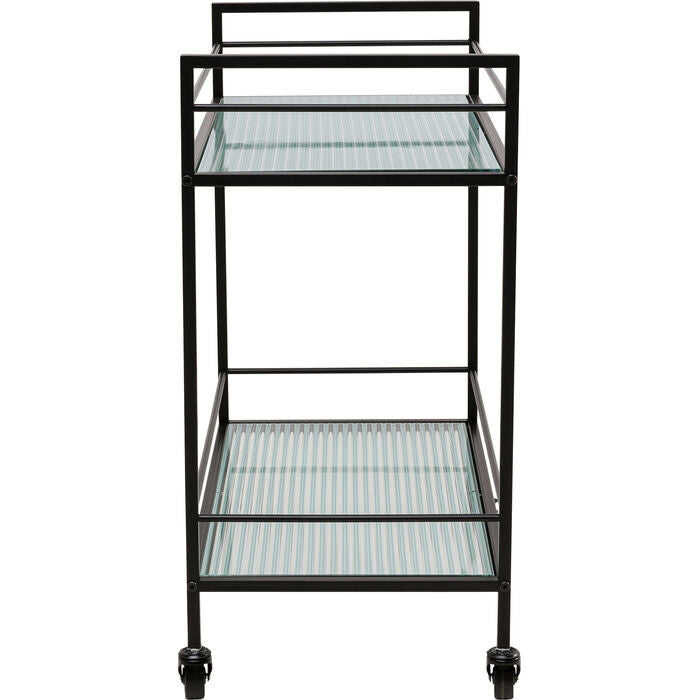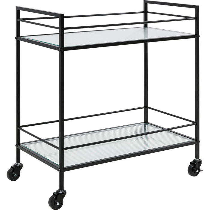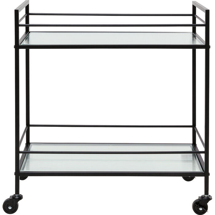 The Tessa Bar Trolley in Black combines sophisticated design with practical functionality. This elegant piece features a sleek black finish that complements modern and transitional interiors. With multiple tiers, it provides ample space for organizing bottles, glassware, and bar accessories while serving as a striking statement piece. The sturdy construction ensures stability, while smooth-rolling casters allow effortless mobility between rooms. Perfect for entertaining or everyday use, the Tessa brings both style and convenience to your home bar setup.