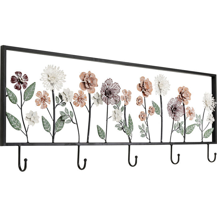 A colorful coat rack with an artistic floral design transforms any entrance area into a fresh oasis of well-being. The delicate floral pattern brings lively accents to the wall and creates a harmonious atmosphere that invites you to linger. The combination of soft colors and an elegant frame made of sturdy metal gives this practical organizer a modern, urban touch. Five sturdy hooks provide ample space for jackets, bags and favorite accessories. Perfect in combination with natural materials and warm textures to create a harmonious overall look in the hallway.