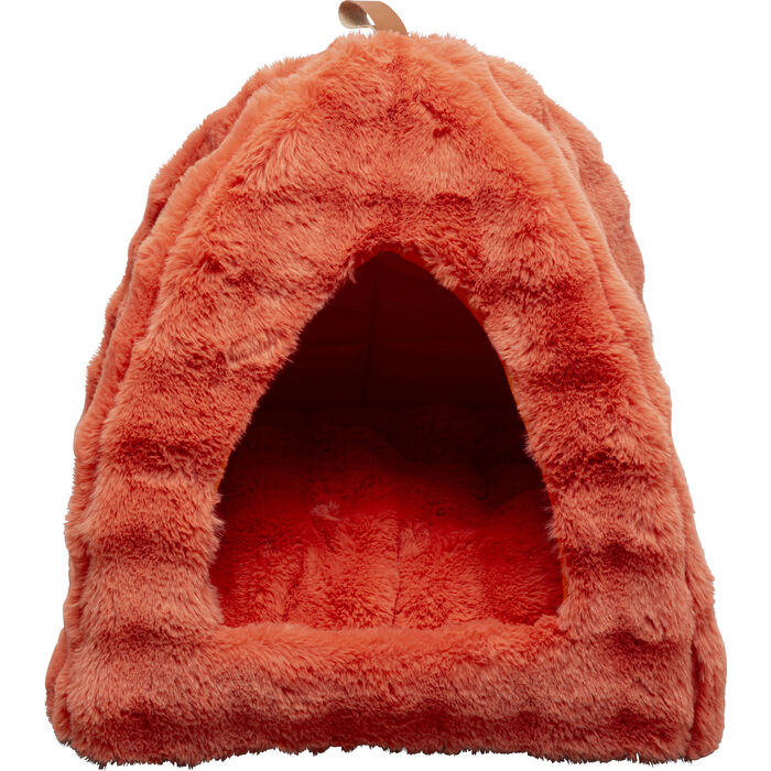 A stylish retreat with retro charm: this pet bed in bright orange combines cosiness with design and will become a colourful favourite spot for your little furry friends. The dome-shaped silhouette provides a feeling of security, while the soft fabric cover and padding offer luxurious comfort. The practical leather-look carrying handle and low weight make it easy to move around in no time at all – perfect for spontaneous restyling or travelling. Whether in the living room as a pop accent, in the bedroom as a harmonious splash of colour or in the hallway as a charming welcome nest – this designer bed turns any space into a wonderfully cosy resting place.