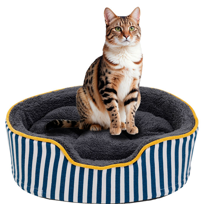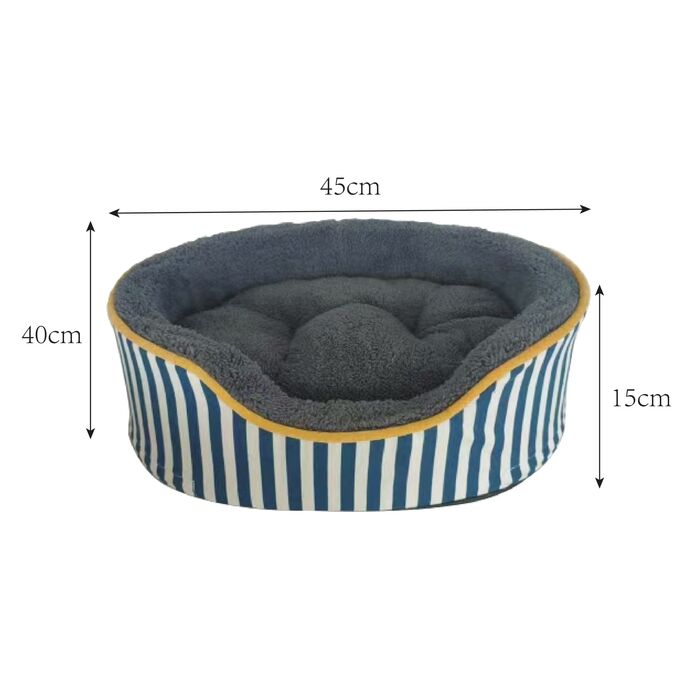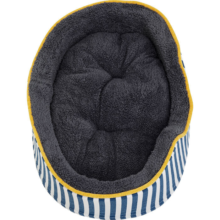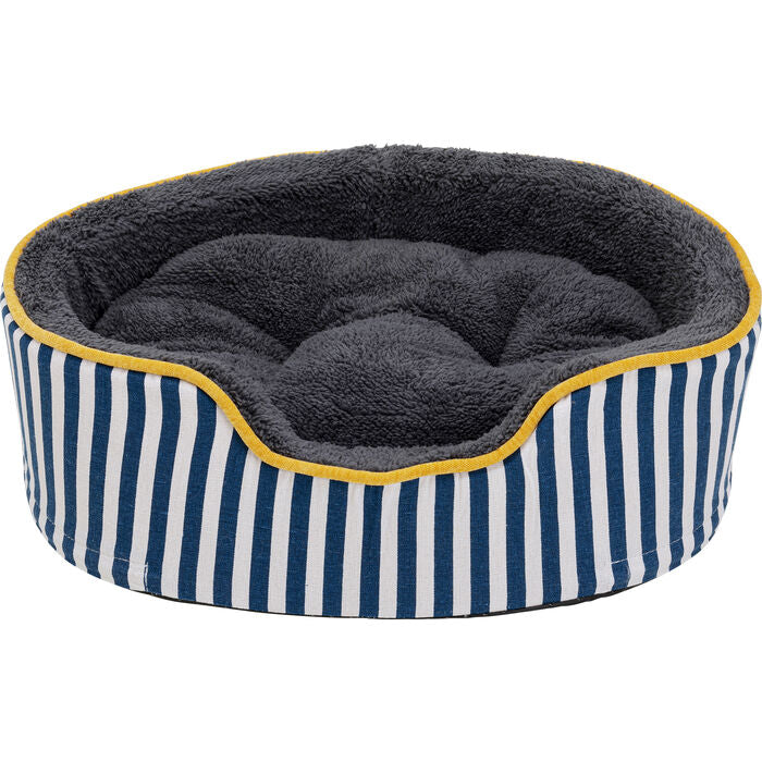 This striped dog and cat bed brings maritime charm into your home. The harmonious combination of blue and white adds a fresh, stylish touch, while the cozy padding and soft cover provide your four-legged friends with a cozy retreat. The thoughtful workmanship, which combines comfort and elegant design, ensures extra comfort. The bed fits perfectly into modern, nature-inspired living spaces or even a Scandinavian interior design style. Practical: the cover can be machine washed at 30°C – an easy-care highlight for every pet.