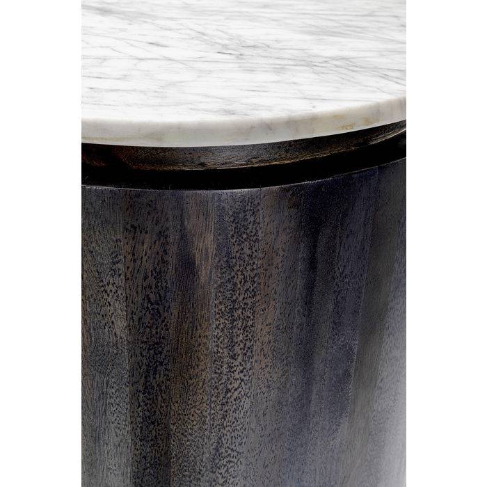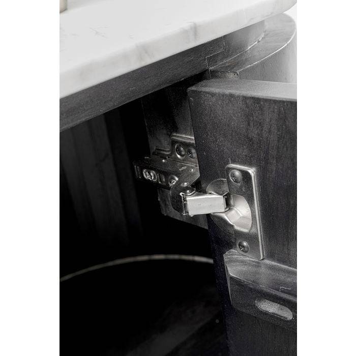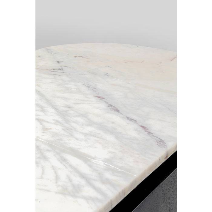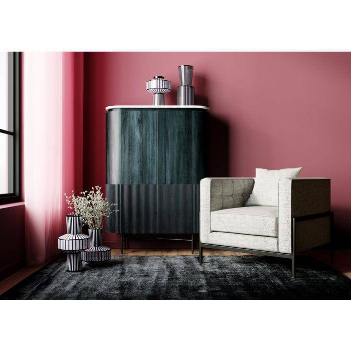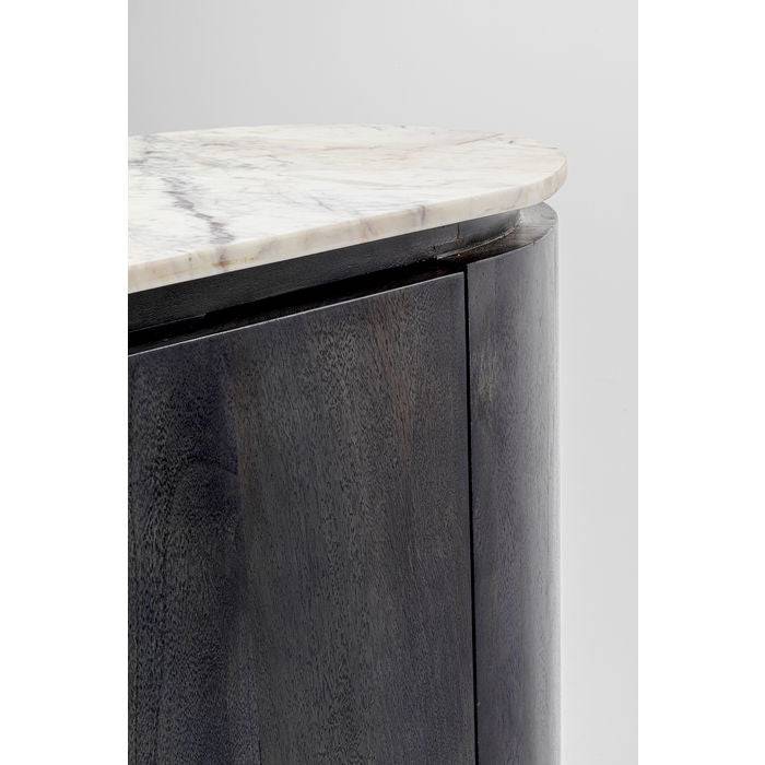 - Plays with the black and white contrast: elegant cabinet with light marble top, dark gray solid wood body on filigree steel frame in black.