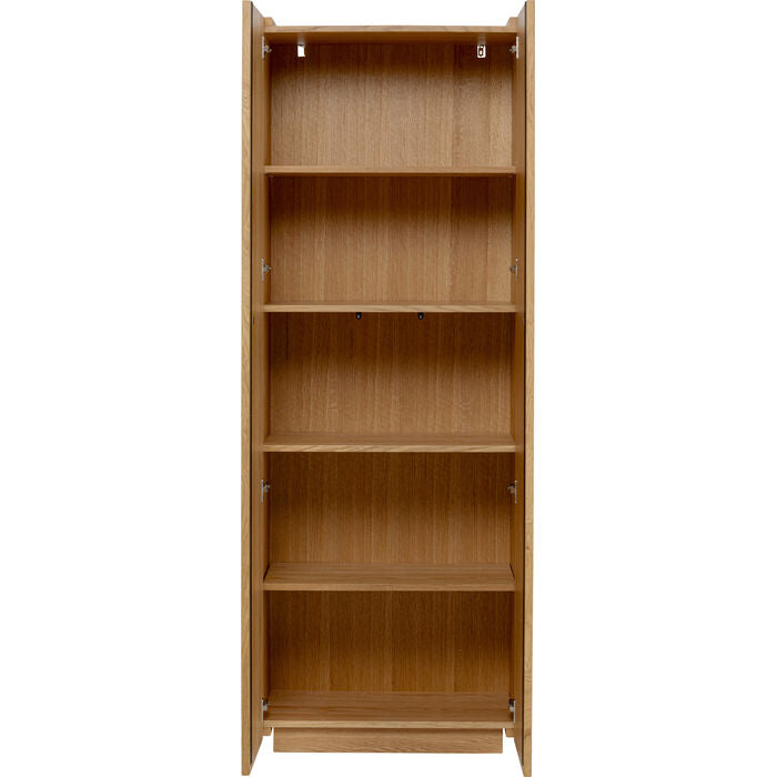 The furniture in our Brighton collection exudes the charm of the 1950s in a modern and stylish way. Characteristic wood grains and vertical front structures bring natural warmth and a dynamic look to your home. The handle-free front with practical push-to-open function ensures a clear, elegant overall appearance and comfortable handling in everyday use. Thanks to their well-designed, flexible storage space, the pieces are not only visual highlights, but also real organisational talents. The slim cabinet with five interior compartments creates generous space for clothes, valuable crockery or books – perfect for the living room or dressing area. Placed next to a vase, an art object or a plant, it adds a stylish, vertical accent to the room.