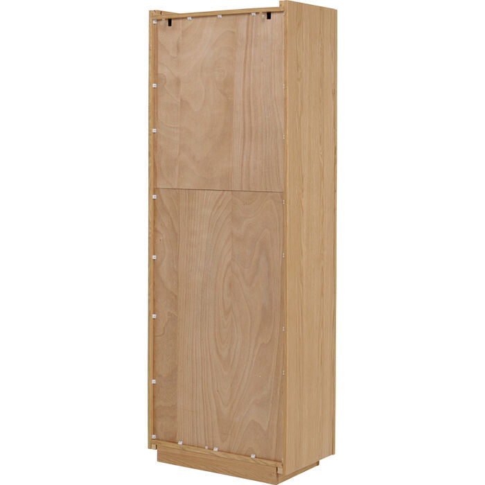 Material: Corpus and fronts: Oak Medium density fibreboard (MDF) Veneered, Back panel: Medium density fibreboard (MDF) Lacquered, Shelf: Adjustable in height, 100 kg Max. load-carrying capacity, Knocked-down, Push-to-open