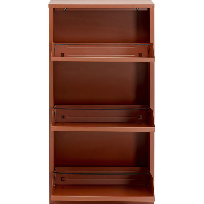 Urban industrial charm meets functional minimalism - this shoe tipper from the Caruso series impresses with its clear lines, powder-coated steel and warm brown tone, which gives every room a cozy, cool touch. Whether chest of drawers, sideboard or shoe tipper: the sleek design blends effortlessly into modern, minimalist or loft-like living styles. Made of metal, it is not only robust and easy to clean, but also makes a statement in the hallway, bedroom or home office. The look is particularly sophisticated in combination with concrete, leather or dark wood. Perfect for anyone who wants smart organization without compromising on design.