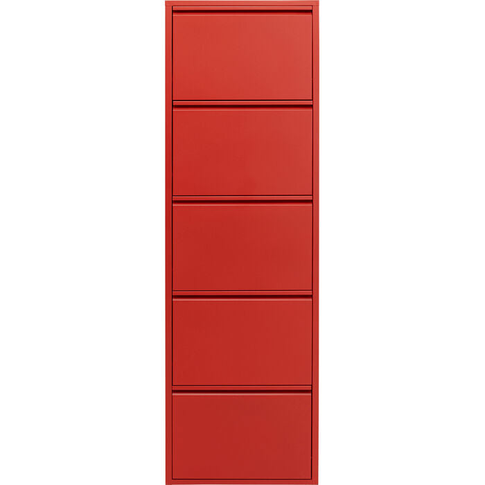 Urban industrial charm meets functional minimalism - this shoe tipper from the Caruso series brings a breath of fresh air to any interior with its rich red hue. The clear lines and powder-coated steel surface combine striking design with practical everyday practicality. Whether in the hallway, dressing area or bedroom - the slim format even fits into narrow niches and ensures stylish organization. Combined with black, grey or natural materials, it creates an exciting contrast that underlines modern, creative living styles. A real highlight for anyone who wants to combine function with character and a touch of extravagance.