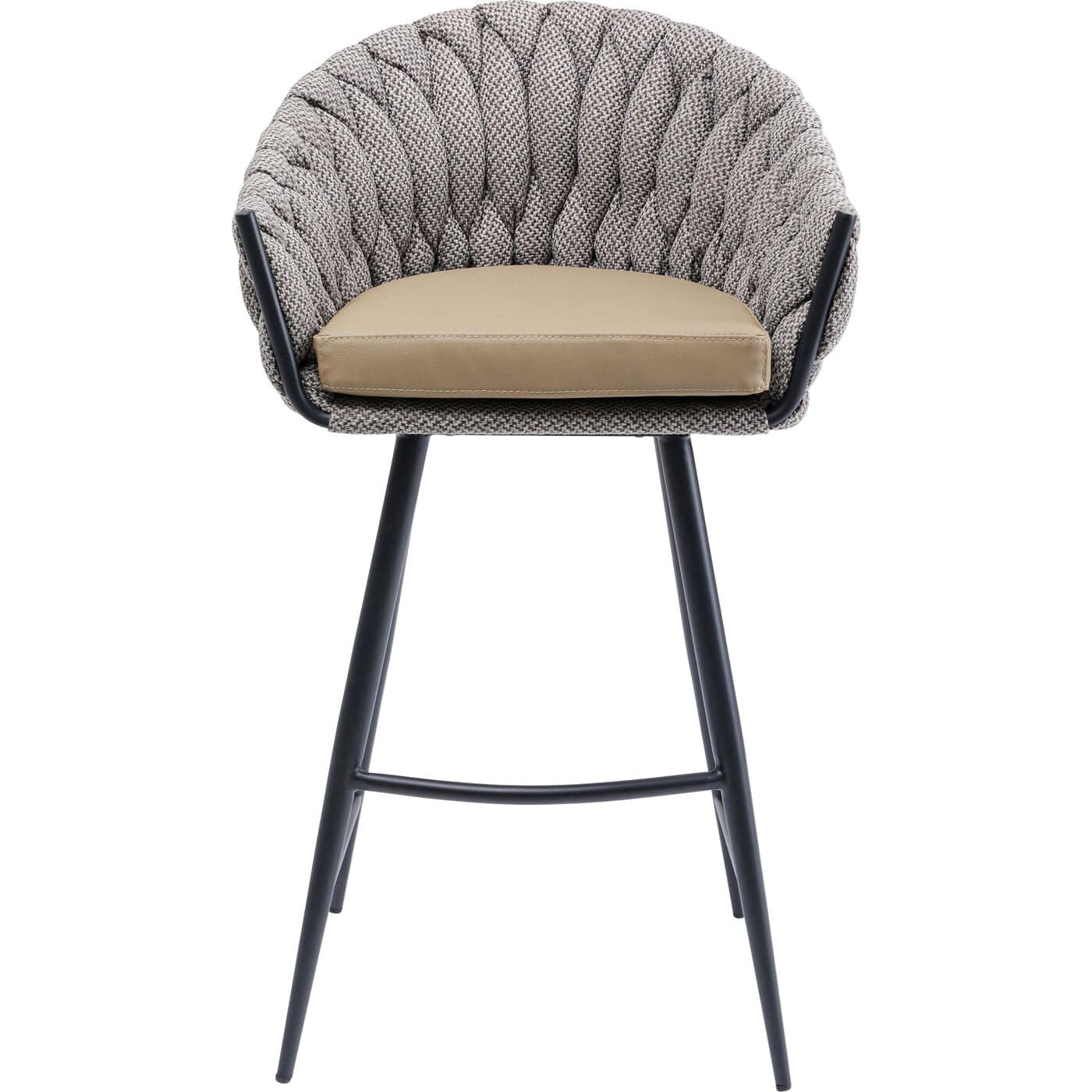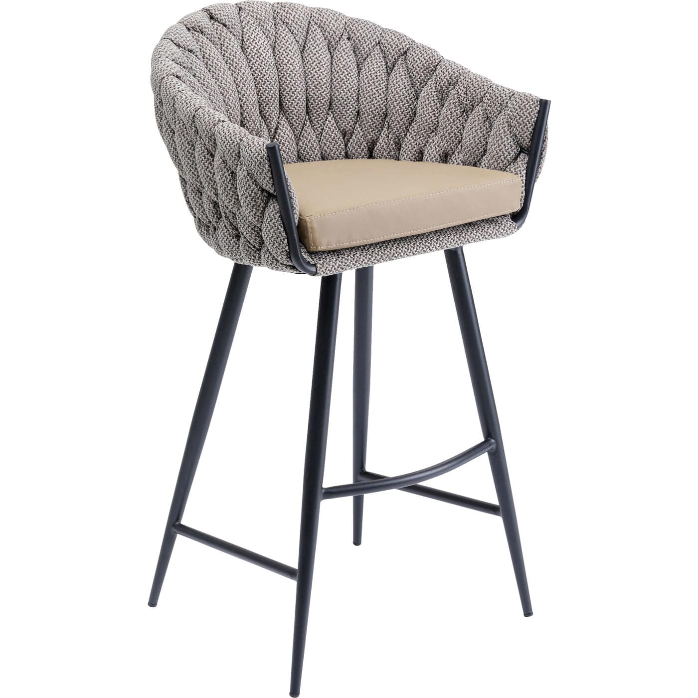 Guests sit comfortably and stylishly on this counter stool. Knot takes enjoyment and conversation to a new level while remaining down to earth with its four steel legs. The upholstered backrest caresses the back, while the refined wickerwork look is a charming eye-catcher.