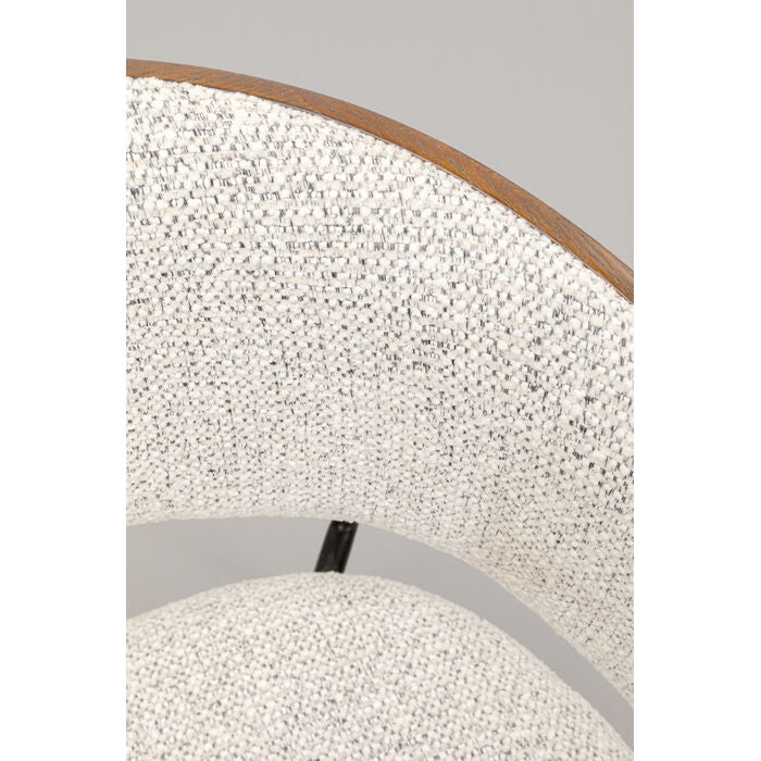 Elegance and timeless modernity - these are the features that characterise the design of this premium-quality upholstered chair. The tweed-look cover meets the warm, brown walnut wood of the backrest and the two combine to create a sophisticated finish. The curved backrest and the foam padding ensure pleasant seating comfort. The frame and legs of the chair are made of steel and powder-coated in black.