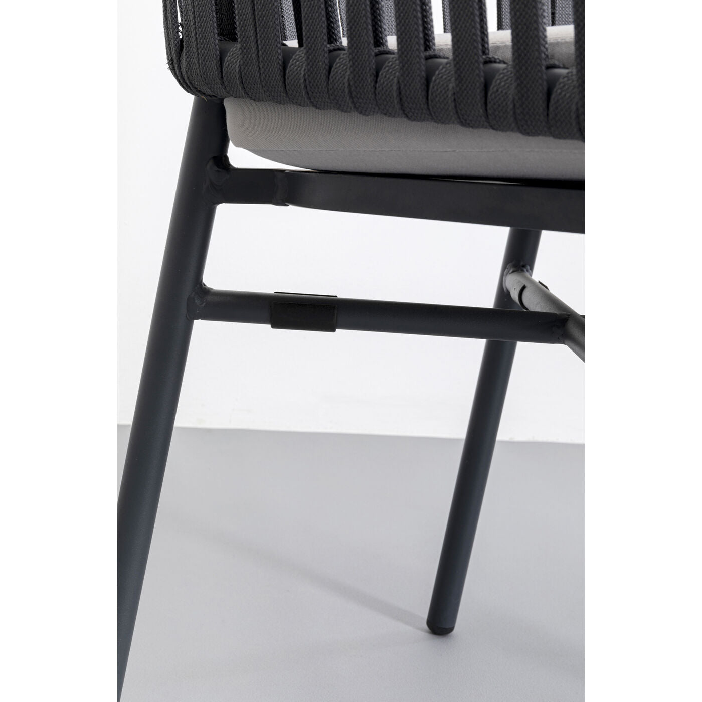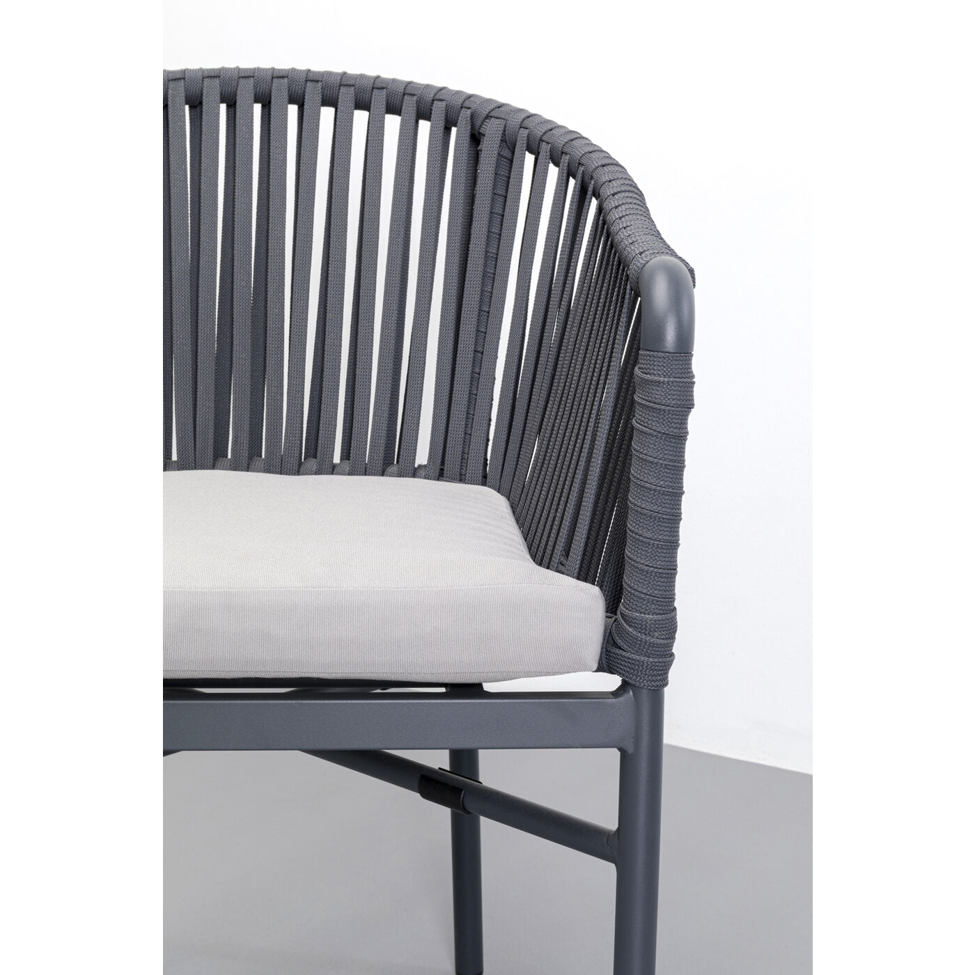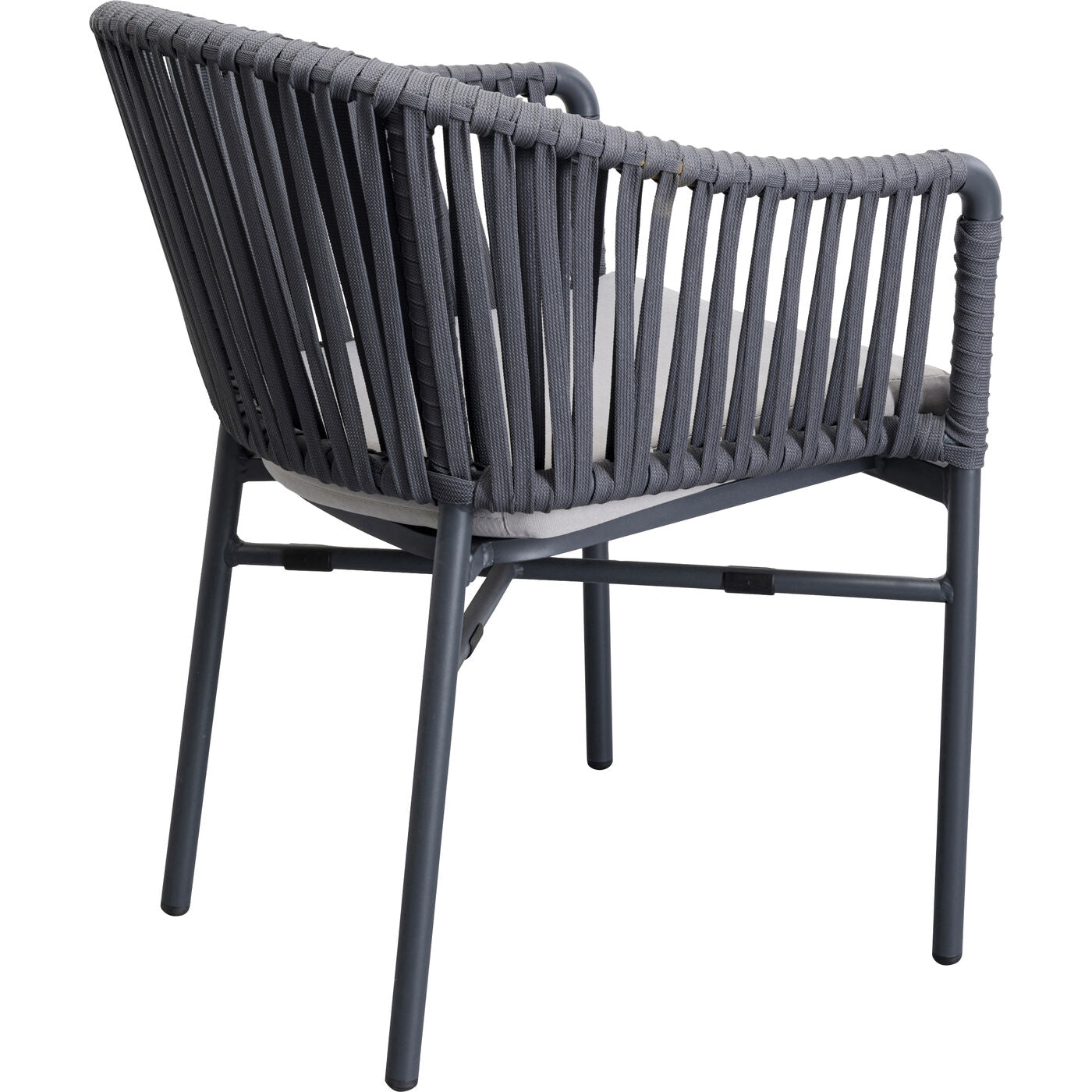 The modern design of this chair makes it an attractive seating option not only for the garden and balcony. This timelessly beautiful armchair also cuts a fine figure indoors, for example at the dining table. Dark grey as a colour is a classic and permits all colour and material combinations. Thanks to the seat cushion, the seat height of 47 cm and the continuous arm and backrest, this aluminium chair promises pleasant seating comfort. The chair is supplied assembled.