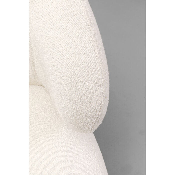 Elegance meets comfort at a stylish level: with its curved shape and cream-colored bouclé cover, this swivel armchair brings subtle luxury vibes to any interior. The swivel function ensures flexible perspectives, while the soft upholstery guarantees relaxed seating comfort - perfect for cozy reading corners, as a lounge highlight in the living room or as an eye-catcher in the bedroom. Particularly effective in combination with gold-colored accents, light-colored carpets or other organically shaped pieces of furniture. A design object that combines functionality and aesthetics and exudes modern restraint with a touch of glamour.