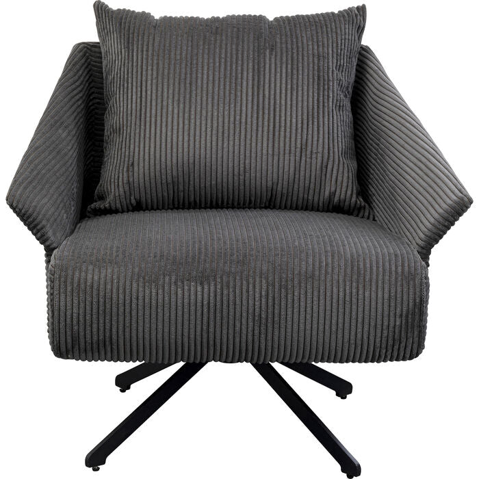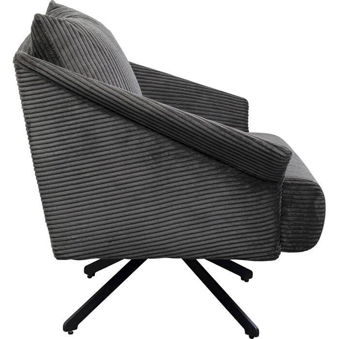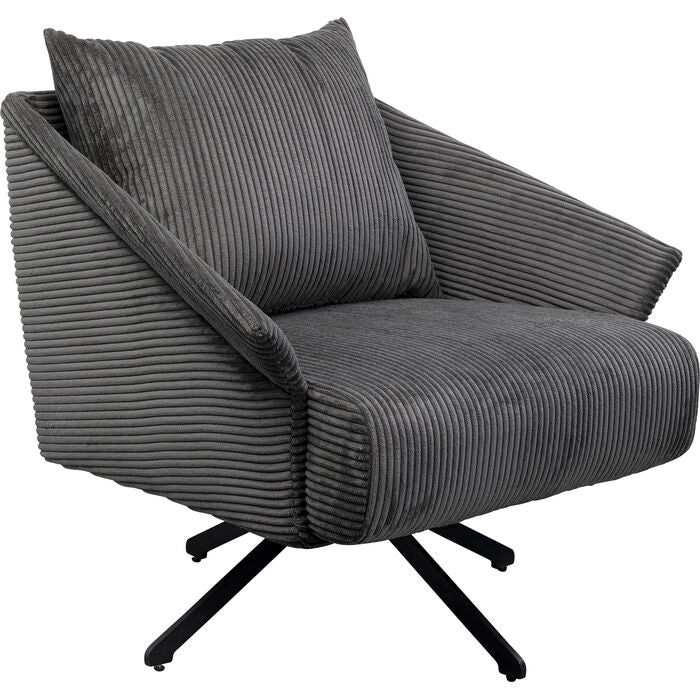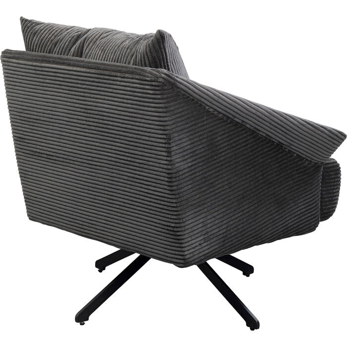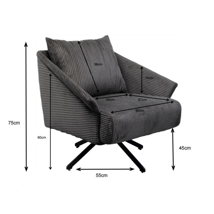 This stylish armchair with its swivel function and velvety soft corduroy cover combines function with urban interior styling. The corduroy fabric gives the lounge chair a cosy and inviting look. Thanks to its design, corduroy is hard-wearing and easy to care for. One of the reasons why interior designers today love using this fabric in furnishing ideas for the living room is because corduroy offers warmth and comfort. Its versatility makes it possible to combine it with a range of furnishing styles.