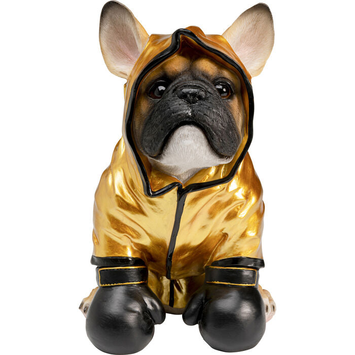 A shiny appearance with a wink: this charming money box in gold and black brings a good dose of humour to your interior with its cute dog in a boxer outfit. The shiny finish combined with lovingly crafted details makes it a funny eye-catcher – whether on the windowsill, on a shelf or between books and accessories on your desk. Made of sturdy polyresin and artfully hand-painted, it combines functionality with decorative character. Ideal as an original gift idea or as a stylish guardian of your savings – this figurine will not only encourage you to save, but also bring a smile to your face.