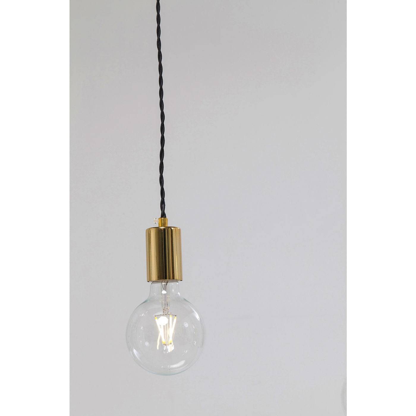 Lamp: homage to the light bulb. Everything could be much simpler than it is: The pendant lamp skilfully reminds us of this fact by dispensing with decorative accessories and instead making use of the elements that are essential! In the case of this wonderful pendant lamp the focus is on the light bulbs, which provide not only a warm glow but also visual highlights. The black filigree frame remains discreetly in the background without appearing inconspicuous. Details such as the fine elements in gold look harmonise perfectly with the luxurious gold-coloured sockets of the light bulbs. All visible cables are also lavishly covered with fabric. The Pole Six lamp is an unusual lighting object which appeals with its exclusive and elegant puristic design. It makes a strong impact above the dining or living room table. - Note: The lamp is supplied without bulbs. efficiency class A-E, 230 V, 50/60 Hz, bulb fitting E27, number of illuminant 6, max. 40 watt, without illuminant, replacable illuminant