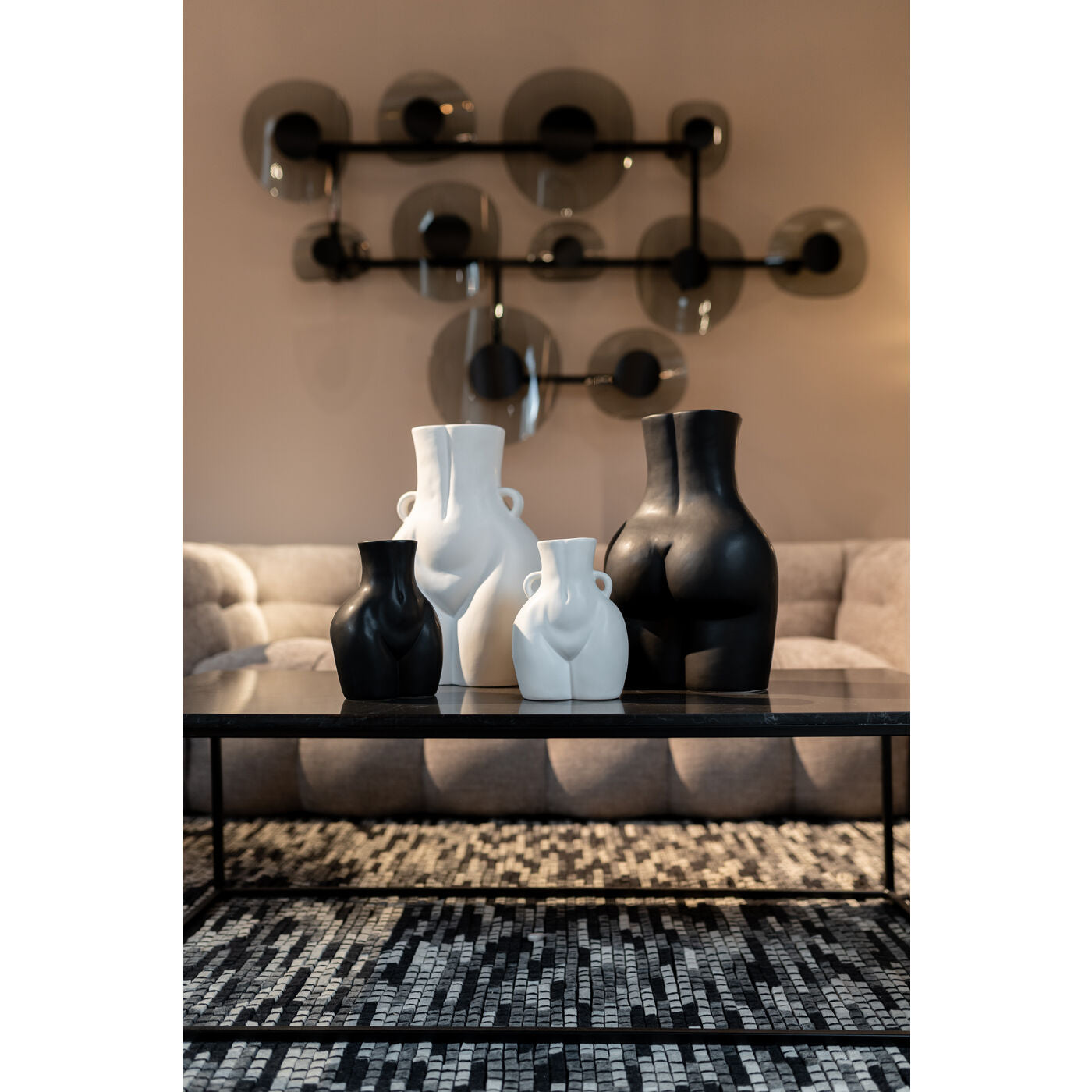The sexy shapes of the Donna ceramic vase will charm you every time you look at it. Inspired by women with rich curves, which are a symbol of fertility. This vase will be beautiful even without flowers, but we definitely recommend freshly cut flowers from the garden to diversify the interior. This stoneware vase is hand-painted in white, which combines well with other vases or decorations. The same vase is also available in black or a vase revealing a woman's bottom. You can combine all vases together.