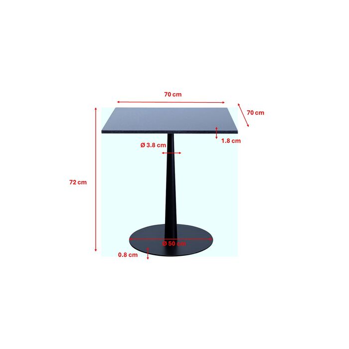 This aesthetically pleasing black dining table (70x70 cm) stands out with its elegant black granite top and clean-lined, modern design. Ideal for smallish rooms, kitchens or dining areas, it combines durability with timeless elegance. The black bistro-style dining table is perfect for style-conscious furnishing concepts, especially where space is at a premium.