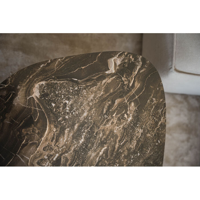 A statement piece with gallery character: this coffee table combines sculptural elegance with functional design. The organically curved top made of finely marbled ceramic lends the room a luxurious touch and attracts everyone s attention. The centrally positioned base made of powder-coated steel not only provides stability, but also creates an exciting contrast to the flowing shape. Ideal as a stage for design objects, as a stylish snack area or as the centerpiece of a modern living concept. The ensemble looks particularly harmonious with sofas in muted tones, textured textiles and statement lights in a metallic look. A work of art for the living room with functional added value.