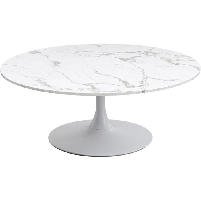A round table with a central base like the models in the KARE Schickeria table series is a stylish all-rounder for all your living room furnishing ideas. Above all, the Schickeria series of coffee tables, side tables and dining tables make a strong impact with their design as modern classics. The form of round tables with tulip-shaped bases is an elegant and timeless choice for any interior. The design dates back to the 20th century, when outdated styles in furniture design were replaced by fresh, young designs. You can discover many variations of this series in our online shop.
