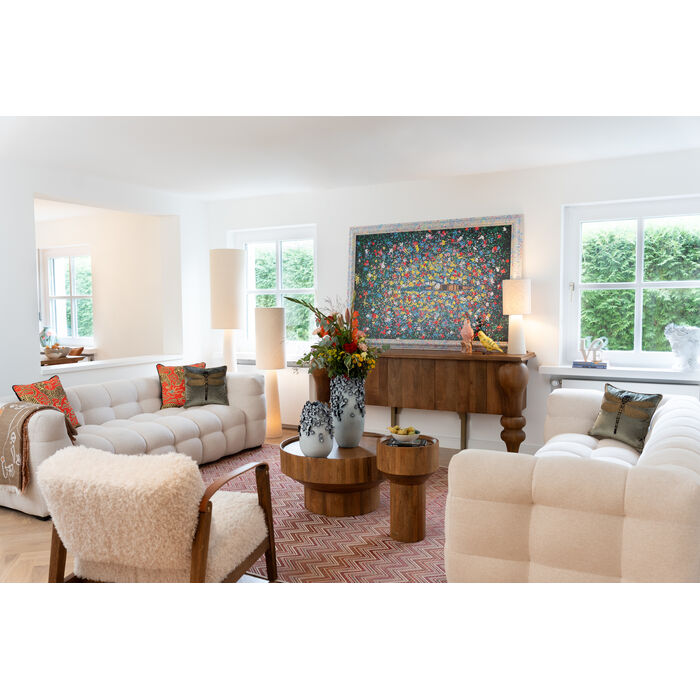 A coffee table with charm - Tessa combines timeless naturalness with modern understatement. The generous, round table top made of solid mango wood sets warm accents and offers plenty of space for stylish arrangements. Whether decorated with a vase full of dried flowers, elegant coffee table books or a tray with candles - this living highlight fits seamlessly into Scandinavian, boho-inspired or minimalist concepts. Its robust construction makes it a long-lasting companion for cozy evenings and social gatherings in the living room.