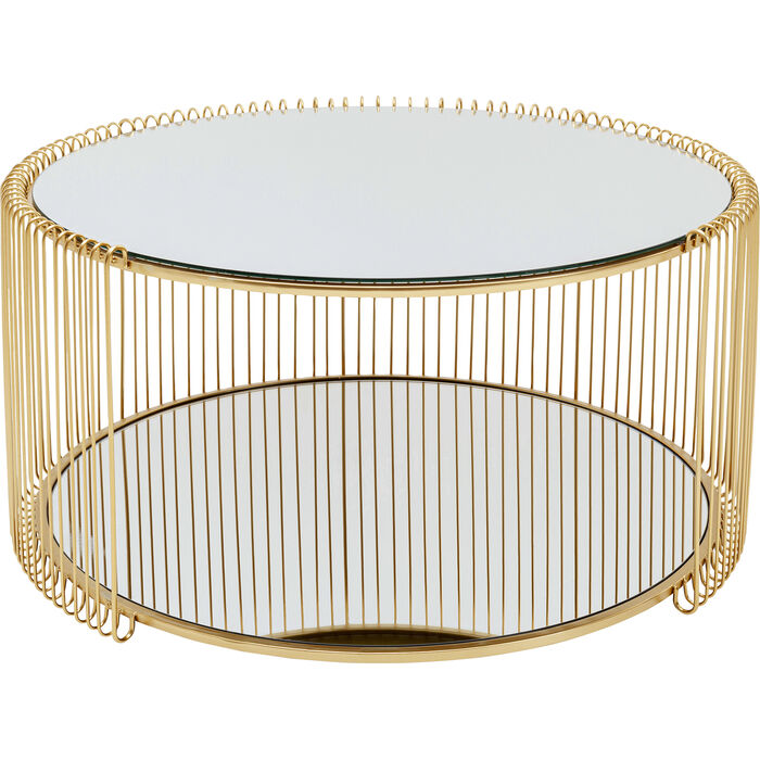 A round eye-catcher with graphic sophistication: This coffee table brings stylish lightness to the living room with its delicate metal frame and two mirrored glass tops. The reflective surface creates an exciting play of light and makes small rooms appear more spacious. Perfect for displaying artistic decorative objects, coffee table books or a tray with drinks. Particularly harmonious in plain black in combination with soft carpets, minimalist sofas or shiny metal accessories. Whether as an elegant centerpiece or a stylish haven of peace - this home accessory adds a touch of urban glamour with functional appeal to any interior.