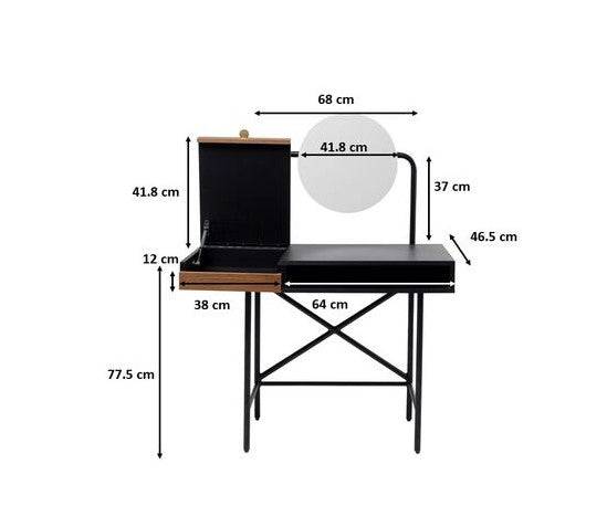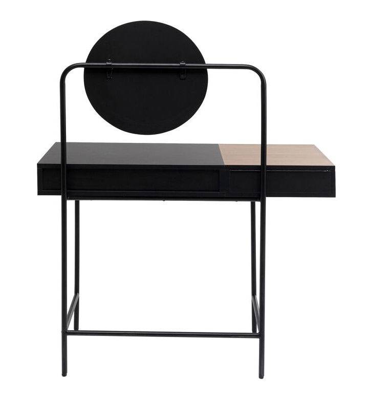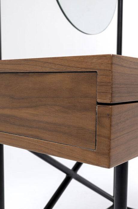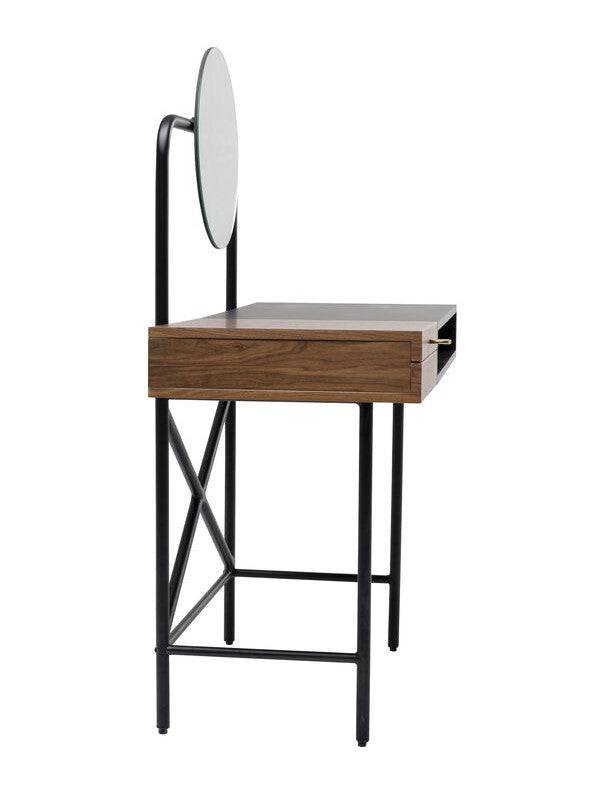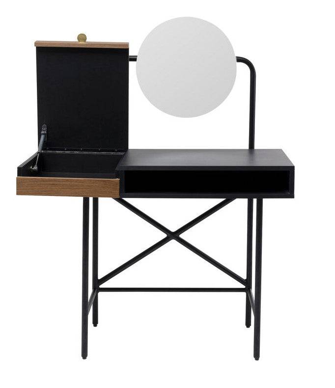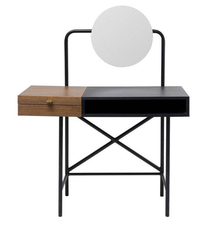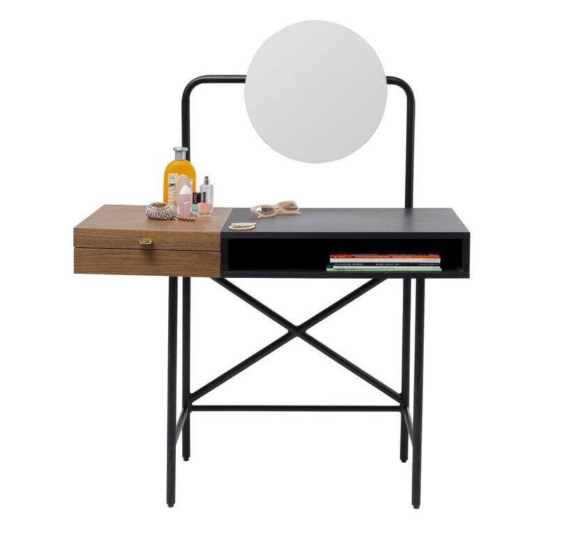 - A seriously elegant dressing table with a round mirror in fine walnut veneer and black