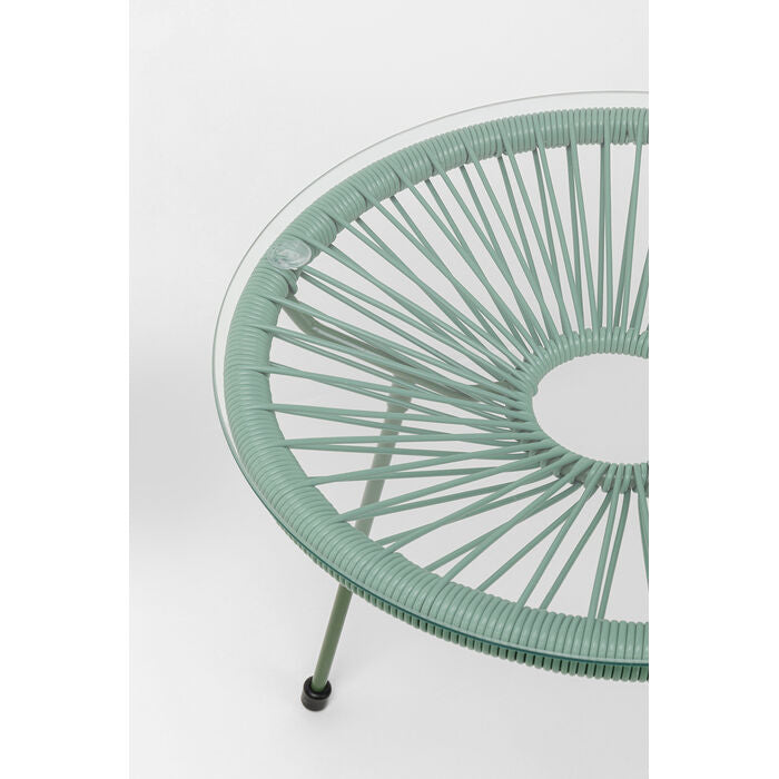 A quick and uncomplicated style upgrade for indoors and outdoors - that s this small, round table, which borrows its design from the famous Mexican Acapulco chairs. This young classic is ready for any area of use: as an airy coffee table next to the sofa, in the bedroom next to the bed and, of course, anywhere outside in the fresh air. Preferably together with an Acapulco armchair!