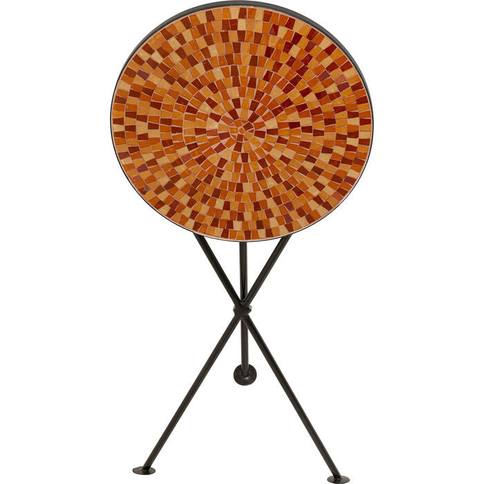 A work of art with function: this table brings color, texture and sophistication to any room. The glossy surface made of artfully crafted glass mosaic gives the ensemble a fascinating shimmer depending on the incidence of light - ideal for creating stylish accents. The black steel frame provides a modern twist and also scores points with its stability and clear design. Whether as an extravagant shelf next to the sofa, as an eye-catcher in the entrance area or as an unusual bedside table - this all-rounder can be flexibly integrated into the interior. Particularly practical: the foldable frame makes it a convertible favorite with a wow effect.