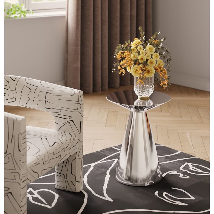 A true design statement: this side table combines modern geometry with a shiny chrome finish and adds a touch of glamour to any room. The elegantly polished stainless steel not only adds style to the interior, but also durability. Whether as an elegant coffee table, a practical storage area in the hallway or an eye-catching bedside table - its versatile shape fits perfectly into modern, industrial and glamorous living concepts. In combination with minimalist furniture or colourful accents, this table creates clear highlights and adds structured chic to any room. A flexible all-rounder for any ambience.