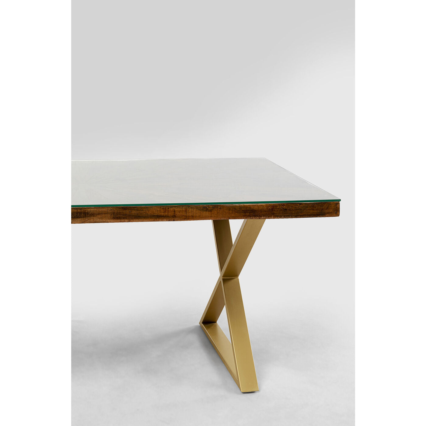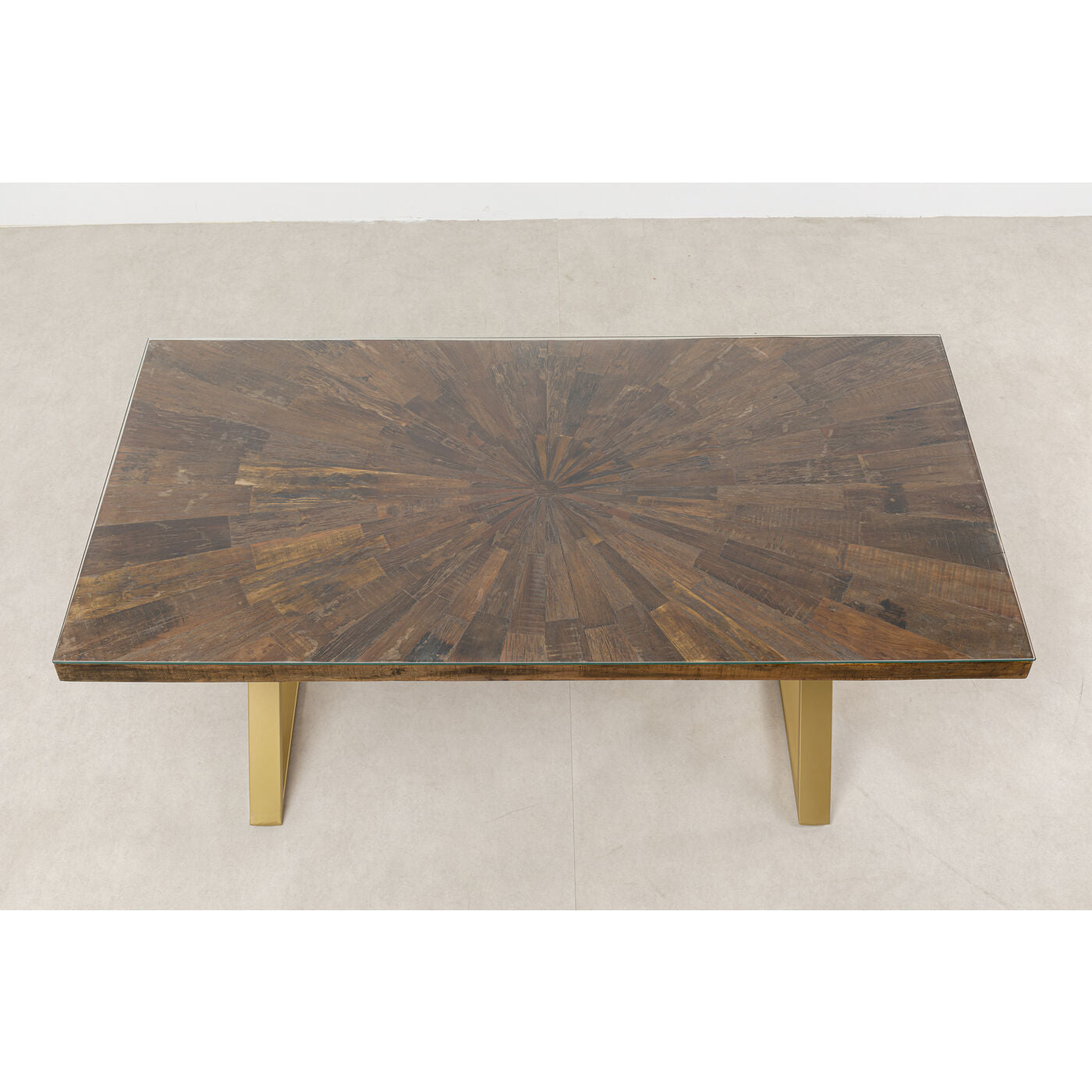 Material: Tabletop: Solid wood Recycled wood Mango Lacquered, Solid wood Recycled wood Acacia Lacquered, Foot: Steel brass-plated, Glass Toughened safety glass Clear, 6 cm Thickness of panel, 40 kg Max. load-carrying capacity, Hand-crafted, Knocked-down