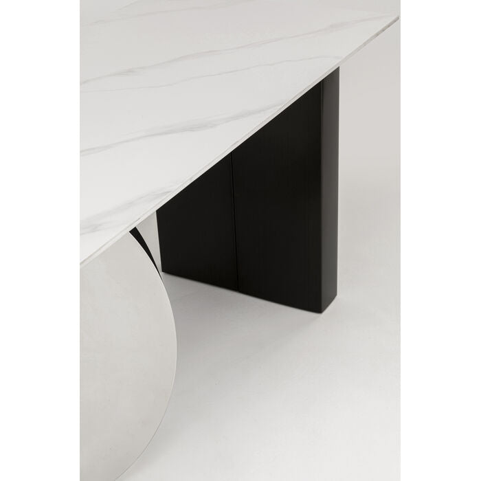 Material: Frame: Stainless steel polished, Tabletop: Stoneware lacquered, Medium density fibreboard (MDF) Coated with Melamine Resin, 12 mm Thickness of panel, 40 kg Max. load-carrying capacity, Knocked-down