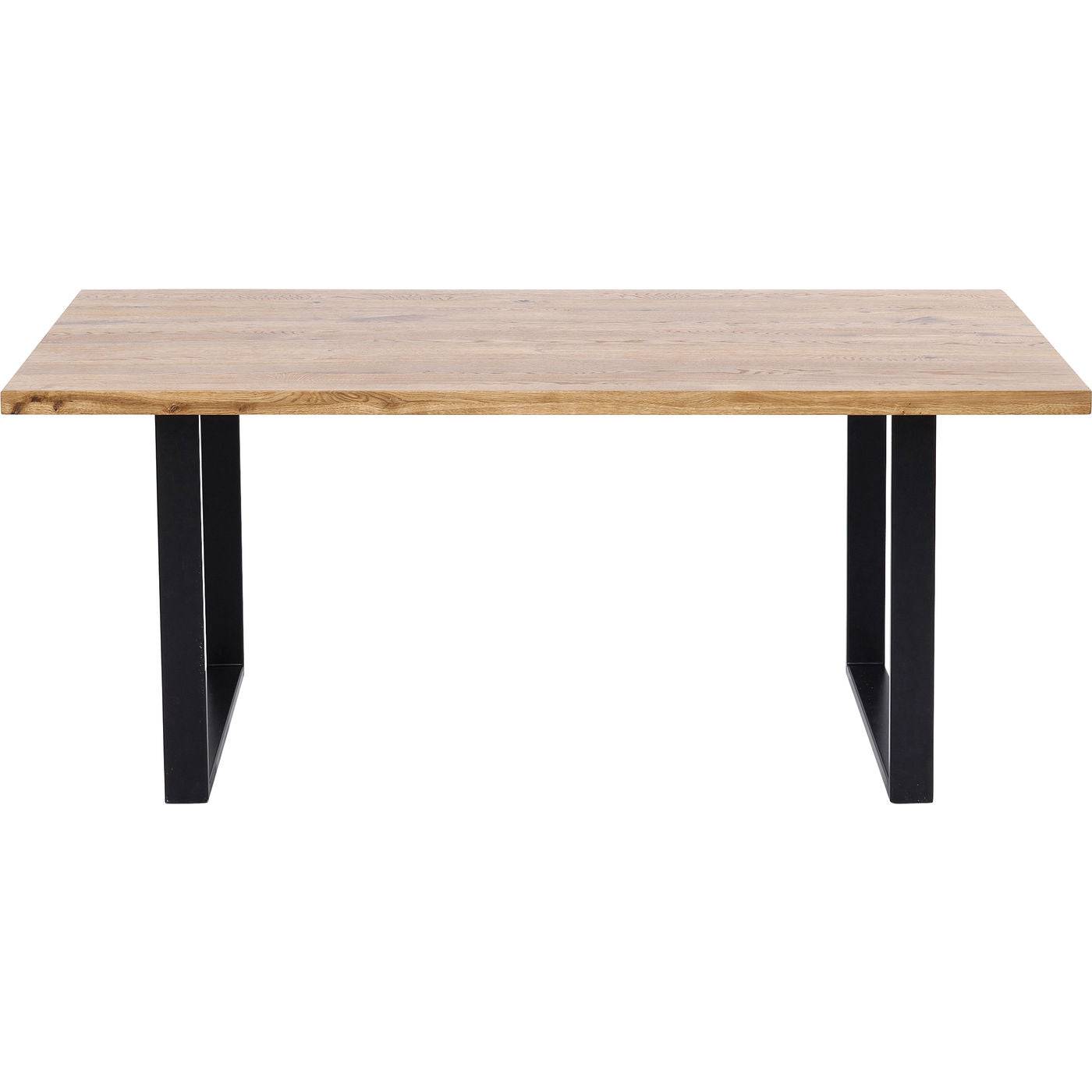 The center of every home and a loyal, robust companion in all situations: the dining table, where you not only eat together, but also celebrate, work and laugh. The mix of the decorative, durable table top made of rustic oak wood and the table frame made of steel makes it a timeless modern designer furniture. Material: (table top: oiled solid oak, legs: lacquered steel)