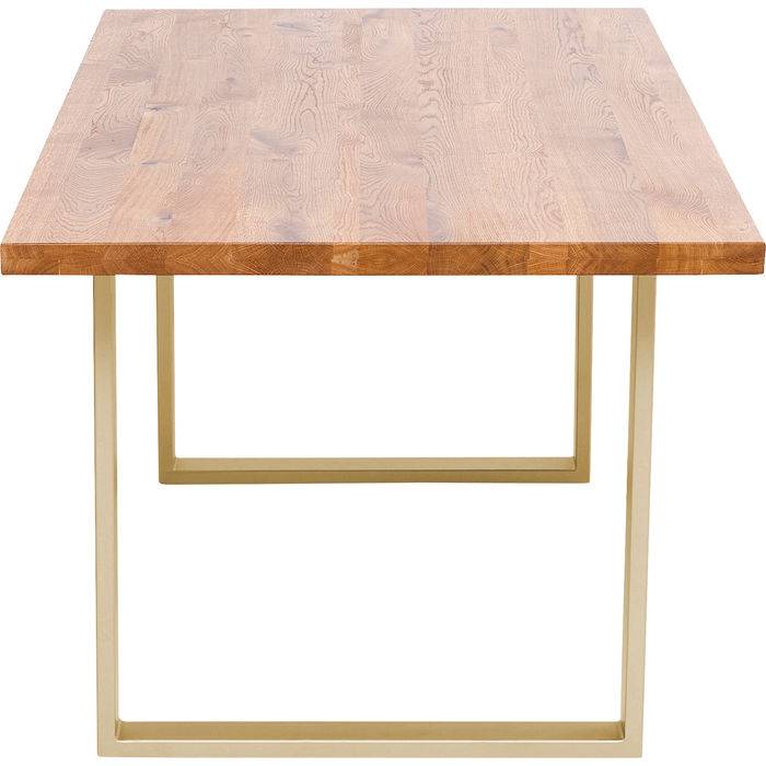 Material: Tabletop: Oak Solid wood Oiled, Legs: Steel brass-plated, Tabletop: FSC certified, 30 mm Thickness of panel, 100 kg Max. load-carrying capacity, Hand-crafted, Knocked-down, Maintenance and Cleaning: Art. No. 25035 Natural Wood Maintenance Oil