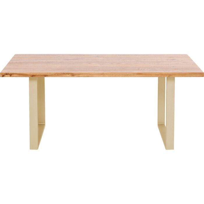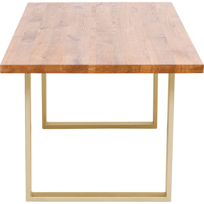 Material: Tabletop: Oak Solid wood Oiled, Legs: Steel brass-plated, Tabletop: FSC certified, 30 mm Thickness of panel, 100 kg Max. load-carrying capacity, Hand-crafted, Knocked-down, Maintenance and Cleaning: Art. No. 25035 Natural Wood Maintenance Oil