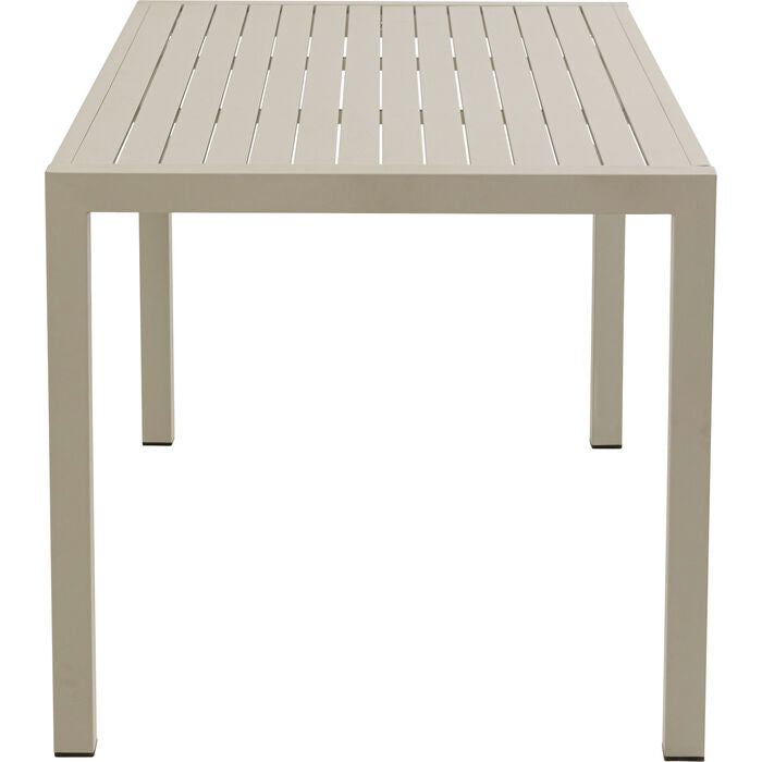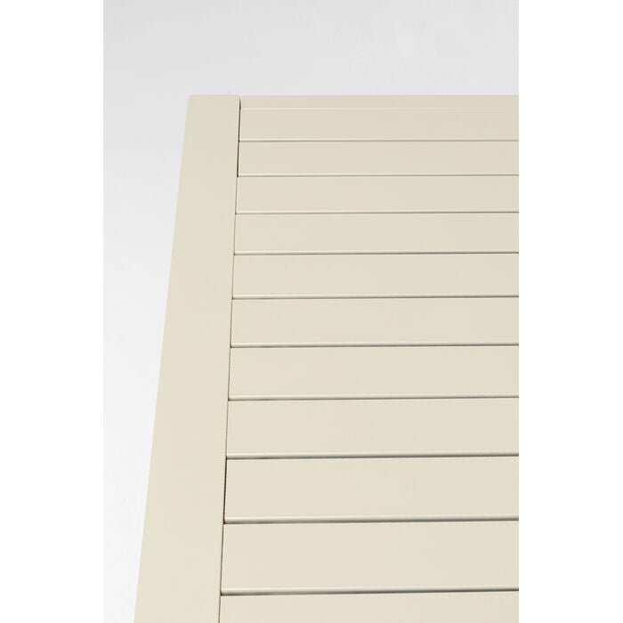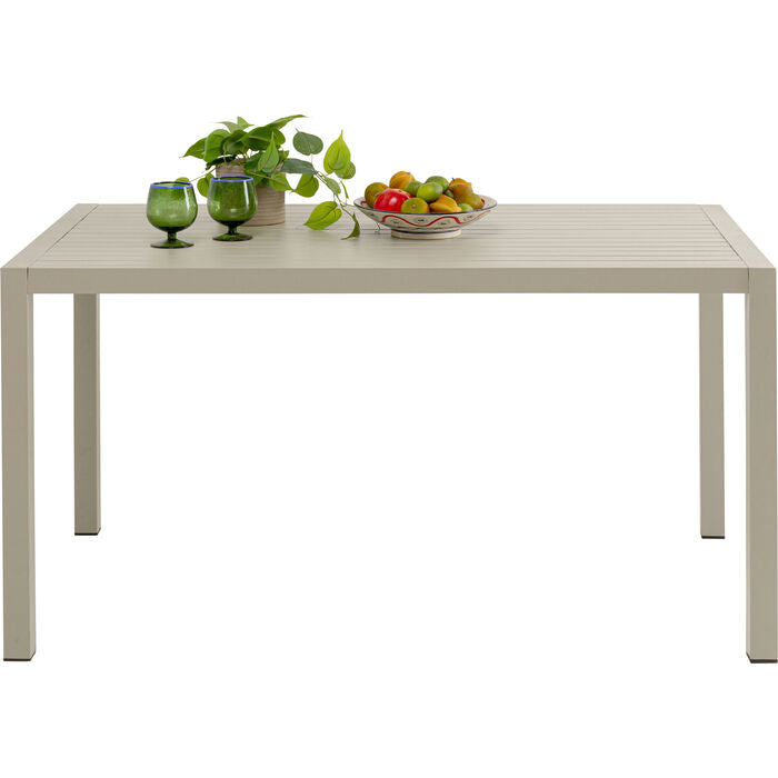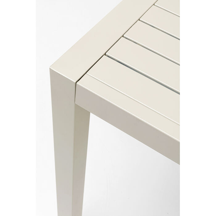 A garden table that impresses with its timeless elegance and functionality. The light gray gives the balcony, patio or garden a modern, airy touch and can be combined in a variety of ways - whether with simple metal chairs or cosy wooden seats. Made of powder-coated steel, it scores points for its high stability, durability and easy maintenance. Despite its compact dimensions, it can comfortably seat 4 to 6 people - ideal for relaxed outdoor moments