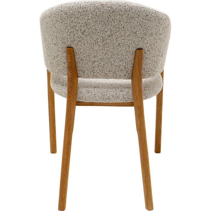 This stylish chair with armrests combines Scandinavian design with top-quality craftsmanship. The padded seat and backrest in elegant beige ensure a high level of comfort. Made of solid oak, it impresses with stability and durability. The clean-lined design features and natural materials give it a timeless elegance. Perfect for the dining room or living room – a furnishing highlight that harmoniously combines comfort and style.