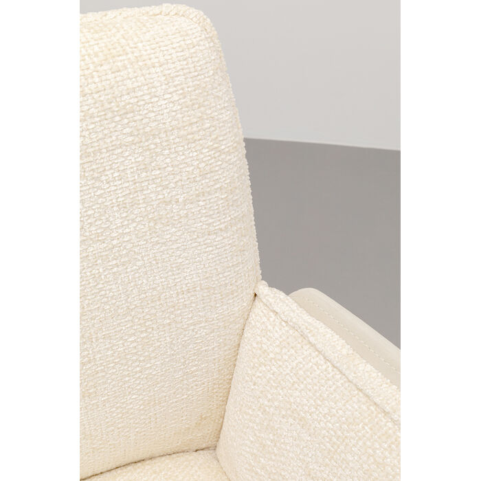 This swivel chair is a real style statement! The gently curved shape and elegant, light-colored upholstery give it a luxurious lightness that blends effortlessly into various living concepts. Whether in a Scandinavian-inspired home office, as a sophisticated eye-catcher in a modern loft or as a harmonious addition to minimalism - its soft upholstery and ergonomic shape ensure maximum seating comfort. The 180° swivel function allows maximum freedom of movement, while the sturdy frame provides a secure base. Combined with an elegant wooden dining table, a simple work console or as a stylish addition to a reading corner, this chair is a flexible all-rounder with a design factor!