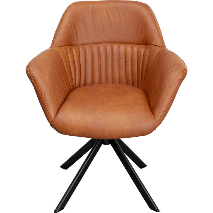 This elegant leather chair with its swivel function combines comfort and modern design. The stylish shell shape ensures ergonomic sitting, ideal for long evenings at the dining table. The high-quality leather cover gives the chair a really classy look, while the black, powder-coated steel frame ensures stability. Perfect for the dining room or home office – stylish, functional and timeless at the same time. A highlight for any interior!