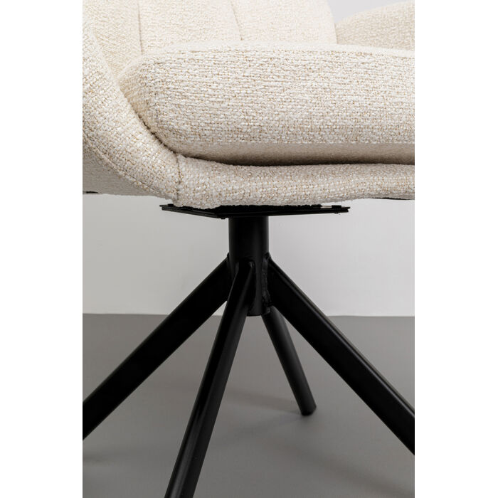 Our swivel chair with armrests in stylish cream-white combines comfort and elegance. Its soft padding ensures comfortable seating, while the swivel function offers more flexibility at the dining table. Ideal for long evenings with family and guests. The timeless design perfectly matches modern and classic interiors. The practical return function of the 180-degree swivel base is worth highlighting. An elegant piece of furniture that enhances dining areas and guarantees maximum seating comfort. Perfect for the style-conscious interior!