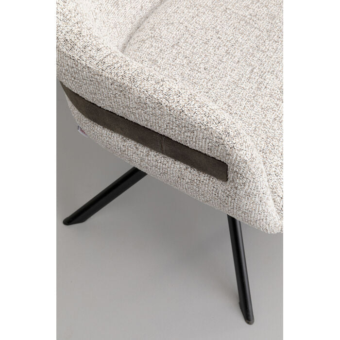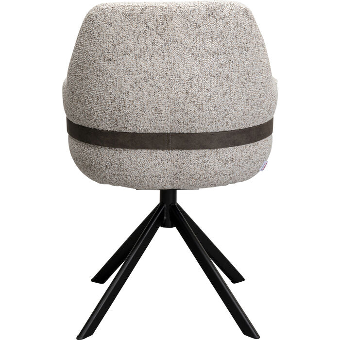 The upholstered swivel chair with armrests in natural light colours offers maximum comfort at the dining table. Thanks to the swivel function, it allows more freedom of movement and comfortable seating for hours. The practical return function of the 180-degree swivel base is worth a special mention. Its timeless design blends harmoniously with both modern and classic interiors. Perfect for social gatherings with family and friends – stylish, functional and elegant at the same time. The perfect addition to any dining area!