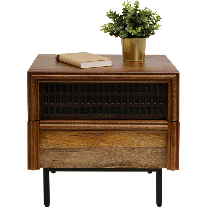 Natural beauty meets artistic craftsmanship: the Gino range combines striking wood grains, warm brown tones and detailed relief structures to create a harmonious overall look. The solid mango wood gives each piece a natural, high-quality character with exciting contrasts thanks to the different carving patterns. Thanks to soft-close and push-to-open, the design remains clean and handleless. Whether as a statement in a modern loft or as a highlight in a boho living style - combined with soft earth tones, metal accents or handmade decorative elements, a natural, inviting ambience is created in any living area.