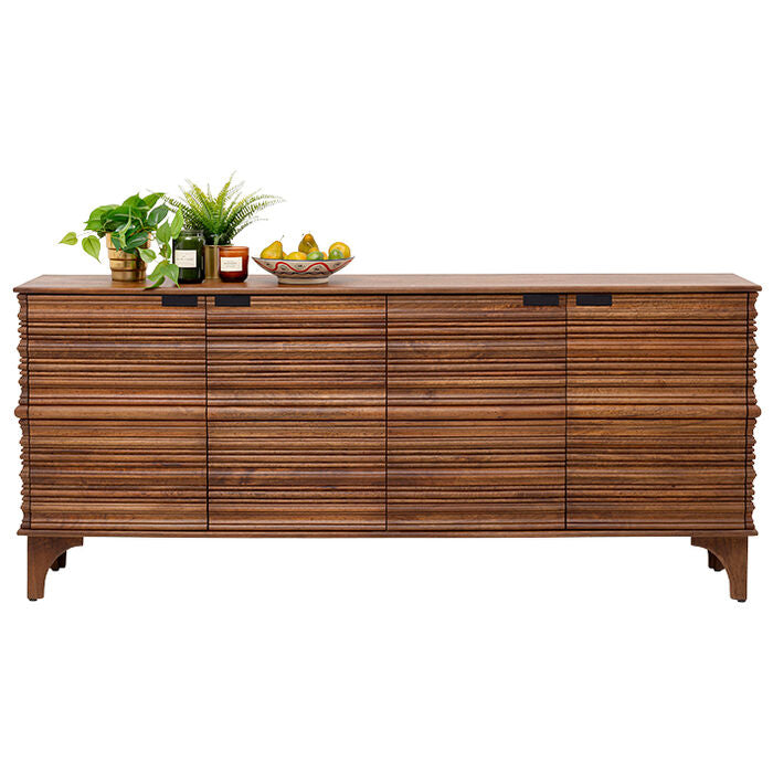 Material: Corpus: Mango Solid wood Lacquered, Back panel: Medium density fibreboard (MDF) Lacquered, Shelf: 2 Stück Medium density fibreboard (MDF) Lacquered, Handles: Steel lacquered, Door: 4 Stück Mango Solid wood Lacquered, 45 kg Max. load-carrying capacity, Hand-crafted, Each peace unique, Assembled, Soft-close