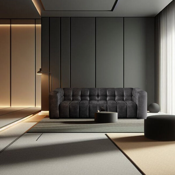 The Sante sofa is a blend of elegance and modernity setting standards for contemporary luxury. Its sleek design showcases a base that seamlessly reaches the floor adding a touch of charm. With its lines and subtle curves this tufted style sofa effortlessly combines style with comfort. Crafted with top notch materials it provides an experience. The Sante sofa goes beyond being furniture; it is a creation available, in both genuine leather and high tech european fabric options.