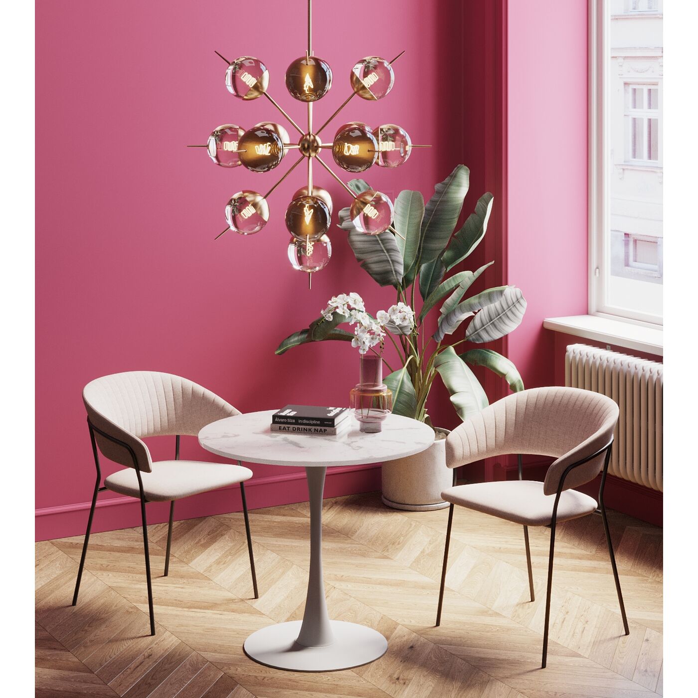 This round table does a good job as a small dining table in the kitchen and dining room. This is where you drink your morning coffee or eat a piece of cake, but also work and end the day in the evening with your best friends and a glass of wine. The Schickeria table features authentic marble decor, which gives it a high-quality design and always keeps it looking really chic. Another advantage: compared to natural stone, this dining table is much easier to clean and does not react sensitively to stains. The coated tabletop is made of robust MDF. The base is also solidly made of lacquered steel. The table is easy to assemble and will be ready for use in no time at all. Simply classy!